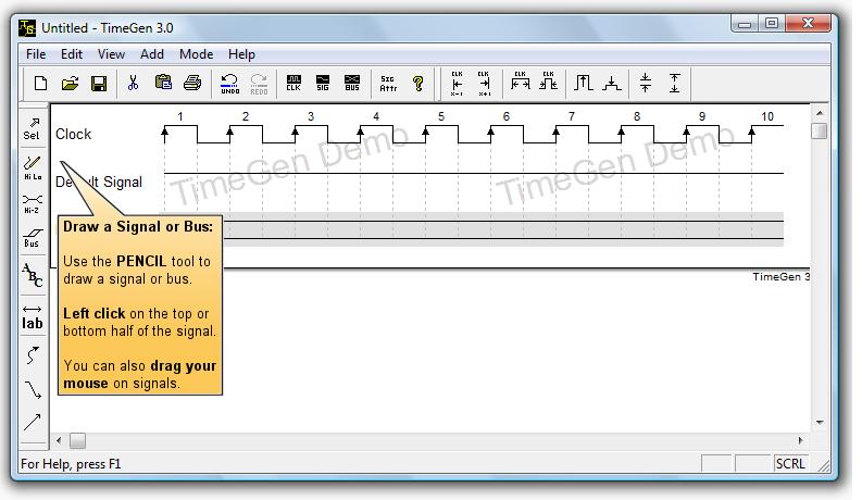 allows you to draw a bus transition (both high and low at same time). Click your left mouse button onto the cycle that you want to create the bus transition. If you want to clear a bus transition, then click on the cycle twice.