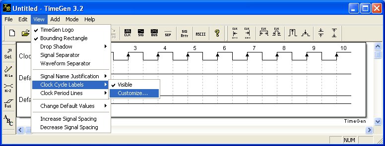 To modify the clock lables, choose from the view menu->clock cycle labels->customize menu option:
